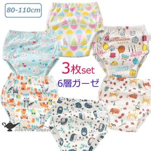 トレーニング パンツ 3枚組 6層 ガーゼ 子ども ベビー 綿100% 高吸水 通気性 80 90 100 110 アニマル柄 女の子 男の子