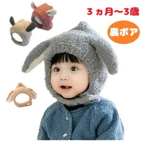 ベビー帽子 ニット帽 冬帽子 耳付き 裏ボア 可愛い 男の子 女の子 幼児 子供 キッズ ホワイト グレー レッド ベージュ ブラック ピンク 冬のお出かけ