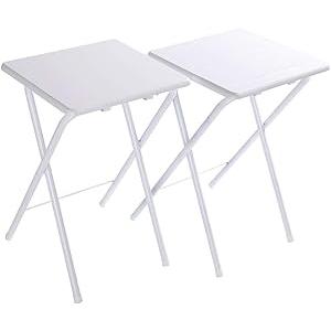 【 2 本 セット販売】折りたたみサイドテーブル(ホワイト)【組立不要】軽量・スリム・コンパクト