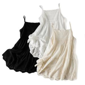 キャミソール ワンピース ミディ丈 キャミワンピ 胸元レース 裾レース 肩紐調節可 インナー コットン 綿 刺繍レース レディース 白 黒