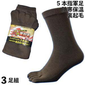 靴下 メンズ 防寒 厚手 5本指 軍足 炎の裏起毛 ソックス あったか裏起毛 踏ん張りの効く五本指 ブラウン 3足組 24.5〜27cm 冬 保温 起毛 足袋 1993