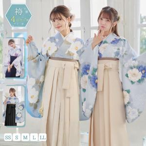 袴 3点セット 袴セット 卒業式 大学生 小学生 二尺袖 着物 和装 レディース 花柄 椿 牡丹 梅 水色 ベージュ モカ グレージュ SS S M L LL 送料無料
