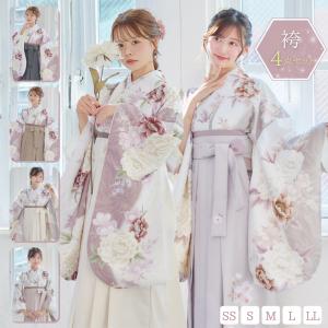袴 4点セット 袴セット 卒業式 大学生 小学生 無地袴 花柄 牡丹 レディース SS S M L LL 着物 ネイビー 紺 黒 ブラック アイボリー グレー 送料無料