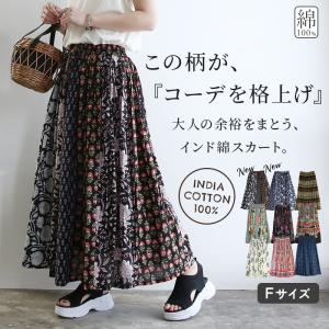 インド綿 スカート ロング 涼感 体型カバー 裏地付き コットン 花柄 ボタニカル 夏 コットン 春 マキシ 軽やか 軽量 ウエストゴム おしゃれ