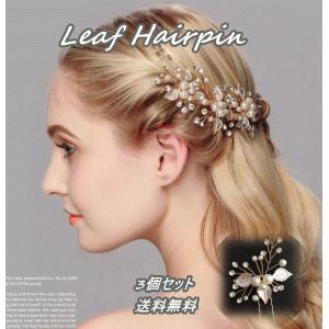 髪飾り ヘアピン Uピン リーフ 3本セット ゴールド シルバー ウェディング 謝恩会 パーティー 発表会 着物