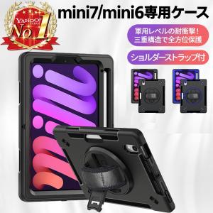 ipadケース mini6 mini7 保護ケース 第6世代 ストラップ付 耐衝撃 携帯便利 持ち運び
