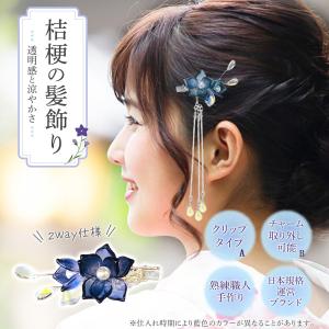 髪飾り 浴衣 桔梗 花 フラワー ききょう パール クリップ ヘアクリップ かんざし ヘアアクセサリー 和装小物 髪留め 上品 綺麗 ワンタッチ