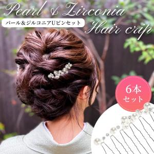 ヘアピン パール 髪飾り ピン ジルコニア 結婚式 卒業式 入学式 母親 留袖 6本セット まとめ髪 お団子ヘア 黒留袖 かんざし Uピン