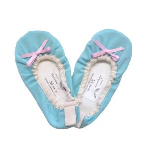 バレエ シューズカバー ブルー ピンクリボン付き 滑りにくい合皮裏地 S/M/L (16-25cm)
