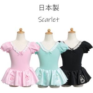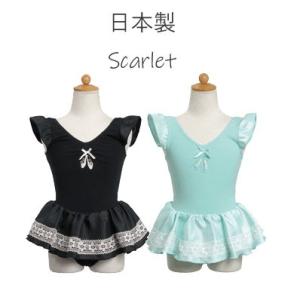 バレエ レオタード 子供 ジュニア 日本製 子供レオタードシャンタンスカート付ミントM・ブラックS綿素材【Scarlet】