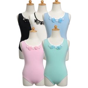 バレエ レオタード 子供 ジュニア 日本製 スカートなし【セール】6490円→4700円!【ツートンフラワー】M 綿素材【Scarlet】