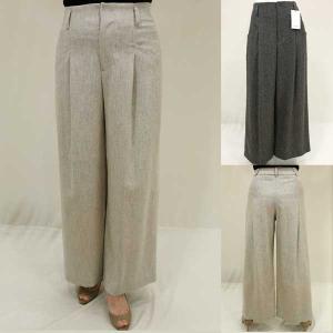 秋冬値下げ【ローブ/パシオーネ/546604/30%OFF】毛ポリ混ツイードベルトレスバックゴム前後1タックLポケボリュームワイドパンツ/PASSIONE/sps/7i71b771xx