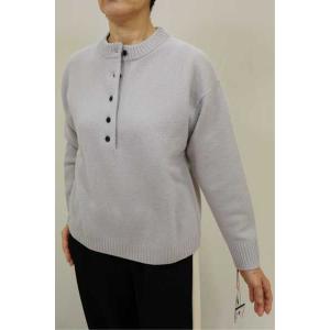 秋冬値下げ【ディニテコリエ/80256575/30%OFF】毛100%ミドルゲージウォッシャブル天竺+リブ丸首5釦ヘンリーネックリラックスヒップ丈セーター/sps/4i41b161xx
