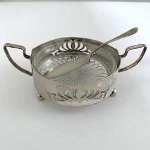バター入れ&バターナイフ【アンティーク】シルバープレート+ガラス(英)(887)