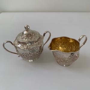 シルバーシュガーポット+ミルクポットセット【アンティーク】アメリカ製(927)