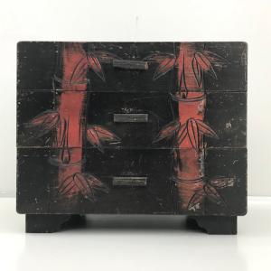 チェーンブローチ【ヴィンテージ】赤黒エナメルフラワー