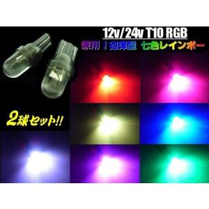 12V 24V T10 RGB 砲弾 LED 電球 2個 七色 レインボー スモール ポジション ルーム球 マップ フットランプ ライセンス ナンバー灯 トラック