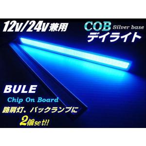 12V 24V 17cm COB LED デイライト 青 ブルー 2個 セット 銀ベース マーカー