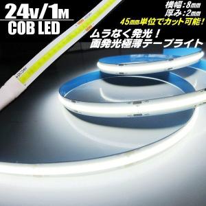 24V 1M 極薄 2mm COB LED テープライト 白 ホワイト 新型 柔軟 面発光 色ムラなし つぶつぶ感 切断 カット デイライト チューブ トラック