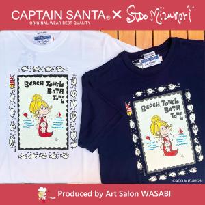 【キャプテンサンタ×水森亜土】コラボ半袖Tシャツ「バスタオル」男女兼用M/L(ホワイト・ネイビー)あどちゃん/グッズ/ギフト/プレゼント