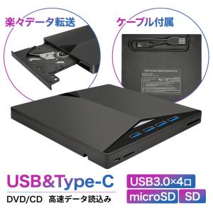 DVDドライブ 外付け 7in1 USB3.0 Windows11 mac USBハブ 4ポート SDカードリーダー セルフパワー ドッキングステーション TypeC接続