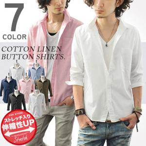 シャツ メンズ 七分袖 七分袖シャツ ボタンシャツ リネンシャツ リネン コットンリネン 綿麻 麻 無地 ストライプ 柄 ショート丈 カジュアル 春 夏 服 春服 夏服