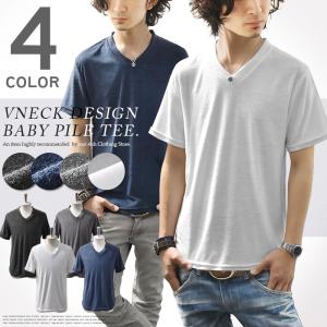 Tシャツ カットソー メンズ tシャツ 半袖 Vネック パイル タオル 生地 ジャガード 無地 スリム ショート丈 カジュアル キレイめ 【sk-1】