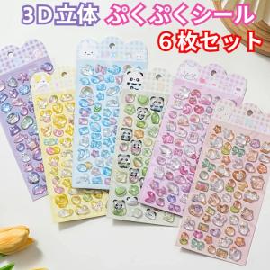 ぷくぷくシール うさぎ 3D立体シール 6枚セット ぷっくりシール エポキシ樹脂 つやつやシール キャンディシール キャラクター