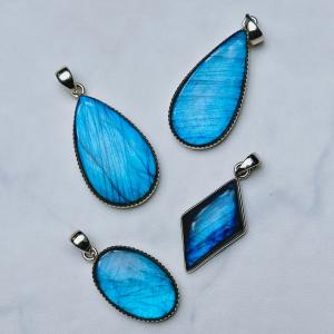 ラブラドライト ネックレス 天然石 ペンダントトップ 大粒 AAA 最高品質 ロイヤルブルー シルバー925 チェーン 8月誕生石
