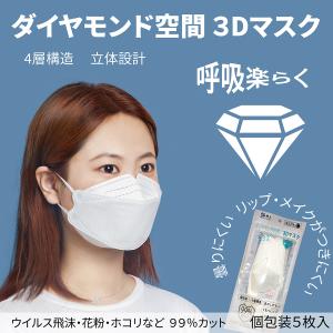 ダイヤモンド空間 3D立体4層構造!不織布マスク(白)5袋セット(25枚)マスク 個別包装5枚入 お得!送料無料!
