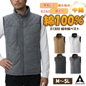 防寒ベスト 作業着 メンズ 作業服 綿100 中綿 冬用 大きいサイズ 黒 グレー 茶色 防寒着 あたたかい 秋冬 0130-0 カジュアル アタックベース