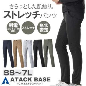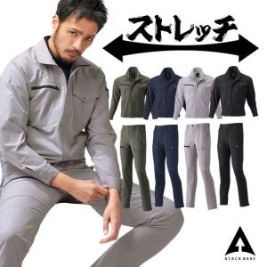 作業服 上下 秋冬 ブルゾン カーゴ メンズ 作業着 ストレッチ 29034 29071 大きいサイズ 5L 6L 7L 制電 軽量 ネイビー 黒 カーキ グレー アタックベース