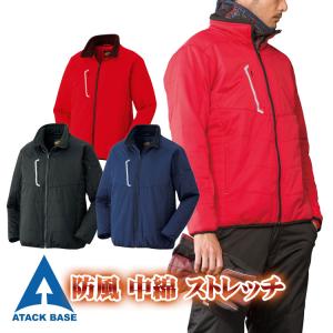 防寒着 メンズ 作業着 中綿 防風 ストレッチ 胸ポケット 袖ペン差し 防寒ジャケット 冬 3851 黒 紺色 赤 上着 大きいサイズ 無地 作業服 軽防寒 アタックベース