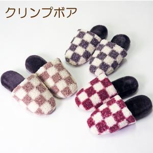 スリッパ 室内 冬用 男女兼用 クリンプボア ブロックチェック 暖か おしゃれ おすすめ