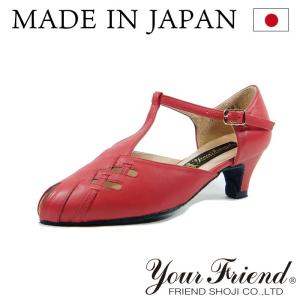 社交ダンスシューズ 女性兼用シューズ [モダン&ラテン] FK-FW5030-RD 【赤】【幅広・ワイド】【外反母趾対応】【PRO】【日本製】【本革】【5cmヒール】
