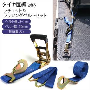 積載車用 タイヤ固縛 対応 ラッシングベルト ラチェット ベルト セット 車両固定 スナップフック ツイストタイプ ベルト幅 50mm 3m ブルー 送料無料