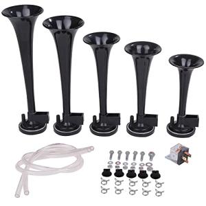 [Avan Knight] ラッパ ホーン 5連 ミュージック エアホーン ヤンキーホーン 12V 車 バイク KRB270 (ブラック)
