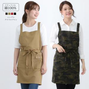 クロス エプロン おしゃれ 保育士シンプル 無地 レディース 綿 コットン