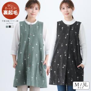 小花柄 裏起毛 エプロン フリース 花柄 裏ボア ゆったり ボア 小花 スモック シンプル ロング ワンピース 保育士 ロング ギフト おしゃれ かわいい 母の日 ギフ