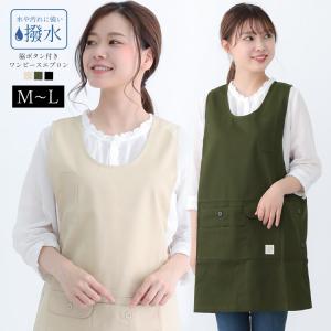 撥水 脇ボタン ワンピース エプロン ツイル生地 無地 ロング ミドル はっ水 かわいい 前掛け 可愛い 料理 ギフト プレゼント 保育士 エプロン ゆったり