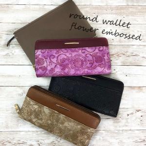送料無料 長財布 束入れ 札入れ 小銭入れ ラウンドファスナー 花柄 型押し プレゼント ギフト かわいい 上品 おしゃれ L-754
