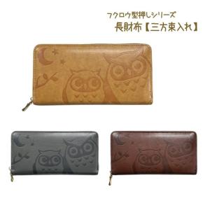 財布長財布三方束入れ札入れラウンドファスナー ギフト プレゼント ふくろう 不苦労 レトロ 開運 幸運 開運財布 贈り物福財部 L-777