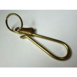 【釣り針 ベルトフックキーホルダー キーリング付き】ゴールドブラス 真鍮無垢製