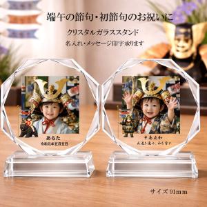 端午の節句 写真立て クリスタルガラス こどもの日 初節句 男の子 五月人形 写真入り フォトフレーム 名入れ お祝い 出産祝い ベビー 赤ちゃん 記念品