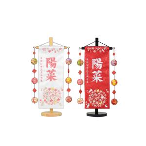 【3色】名前旗 名入り掛け軸(小:高さ約44.5cm) 友禅 金襴名前掛軸 吉祥金泥梅花紋入 招福華鞠に扇 スタンドセット 飾り房付 命名掛軸【女の子】ひな祭り