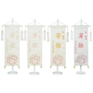 白揃え御名前旗 刺繍 白台付きセット 特中 旗サイズ40cm 雪花 国産織物使用 日本製 刺〓 ひな祭り 雛人形 女の子