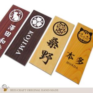 表札 マグネット プレート サイズオーダー 猫恵紋+木目 ネコ 家紋 着脱可 両面テープ マンション 戸建て サロン ポスト 玄関 おしゃれ かわいい データ入稿可