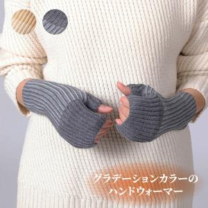 グラデーションカラーのリブアームウォーマー ハンドウォーマー アームカバー 手袋 あったかグッズ 秋冬 防寒 スマホが触れる プレゼント