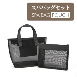 スパバッグ ポーチ セット メッシュ おしゃれ メンズ レディース 温泉バッグ お風呂バッグ メッシュバッグ 大容量 小さめ 通気性 軽量 便利 ブラック 黒 無地