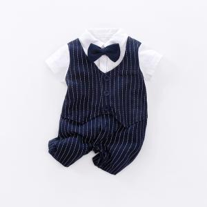 ベビー重ね着風フォーマル半袖 夏用セレモニーロンパース 結婚式服 男の子フォーマル ロンパース 半袖 ベビー服 男の子 蝶ネクタイ付き